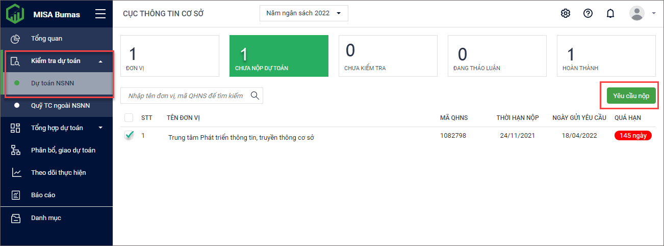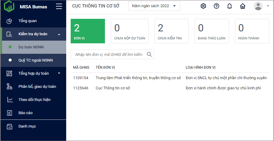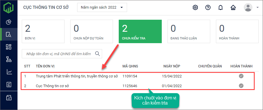 – Chưa kiểm tra: Các đơn vị đã nộp dự toán cho đơn vị chủ quản nhưng đơn vị chủ quản chưa kiểm tra dự toán.