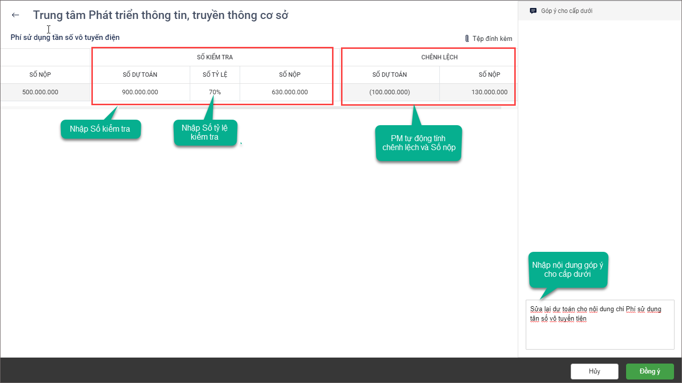 4. Nhập góp ý cho đơn vị cấp dưới.