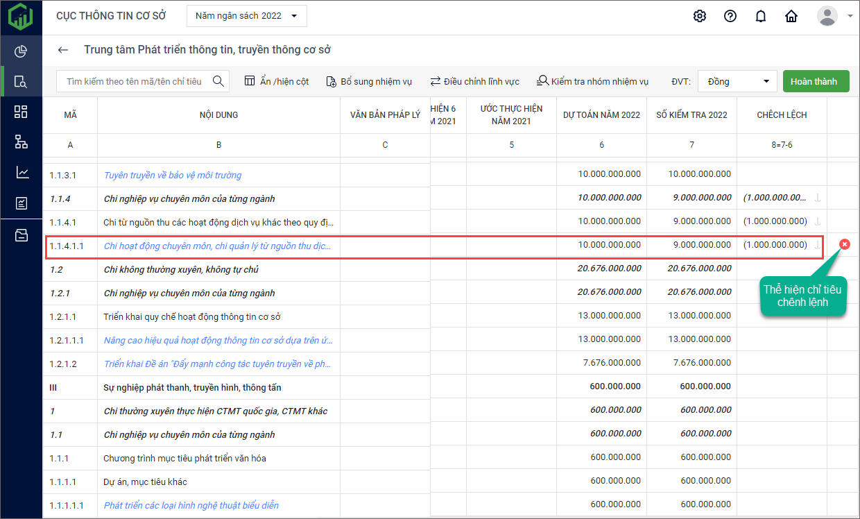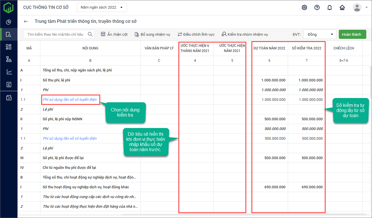 – Hoàn thành: Các đơn vị đã được đơn vị chủ quản xác nhận hoàn thành kiểm tra dự toán.