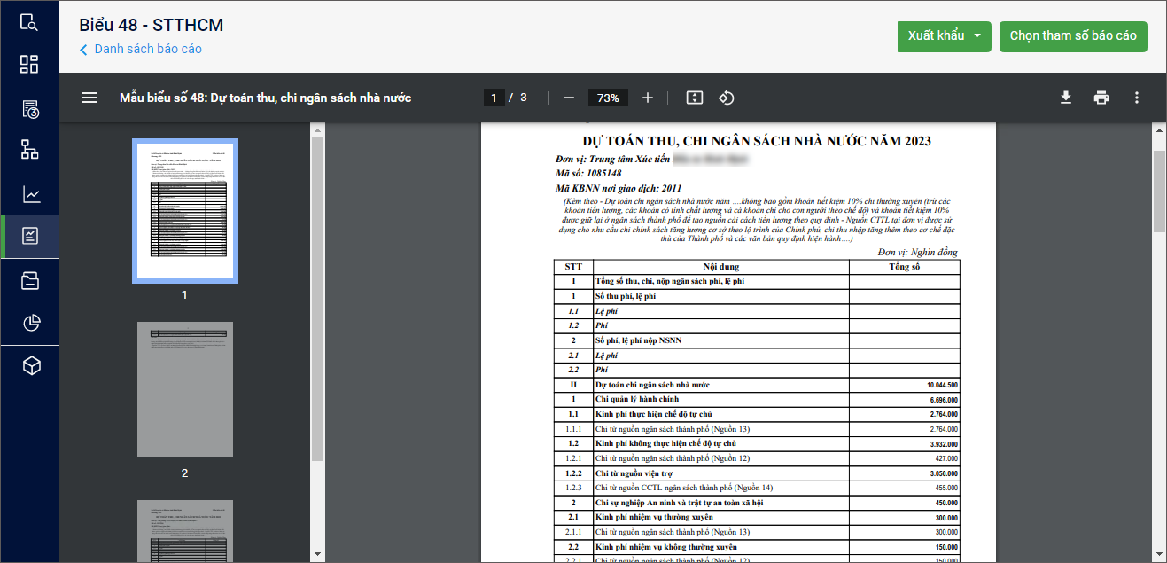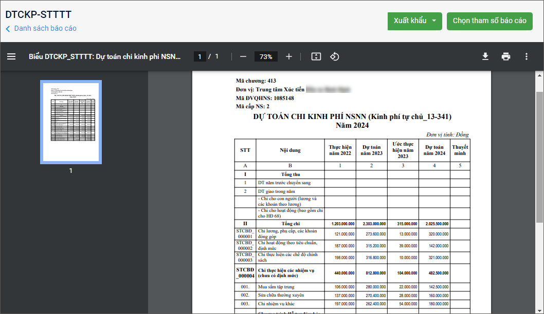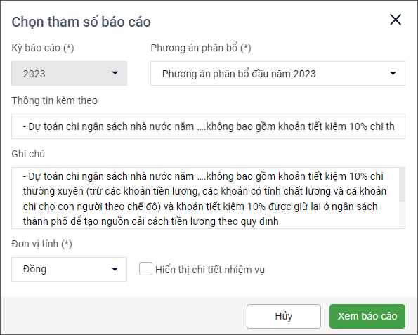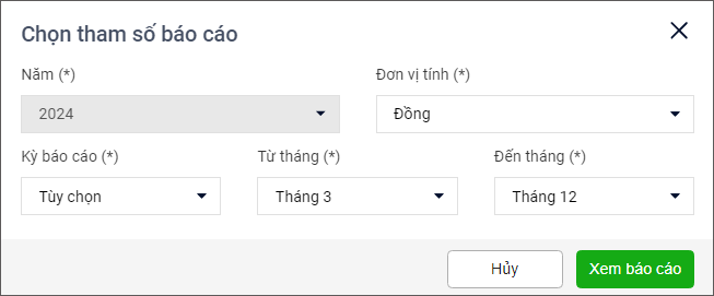 - Khai báo tham số báo cáo. Nhấn Xem báo cáo.