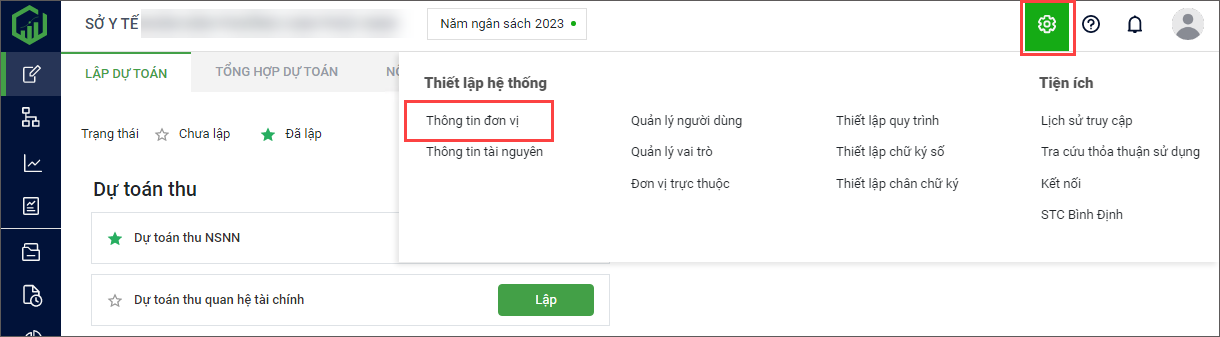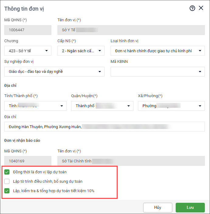 5. Tích chọn Đồng thời là đơn vị lập dự toán nếu đơn vị vừa thực hiện chức năng tổng hợp vừa thực hiện cả chức năng lập dự toán.