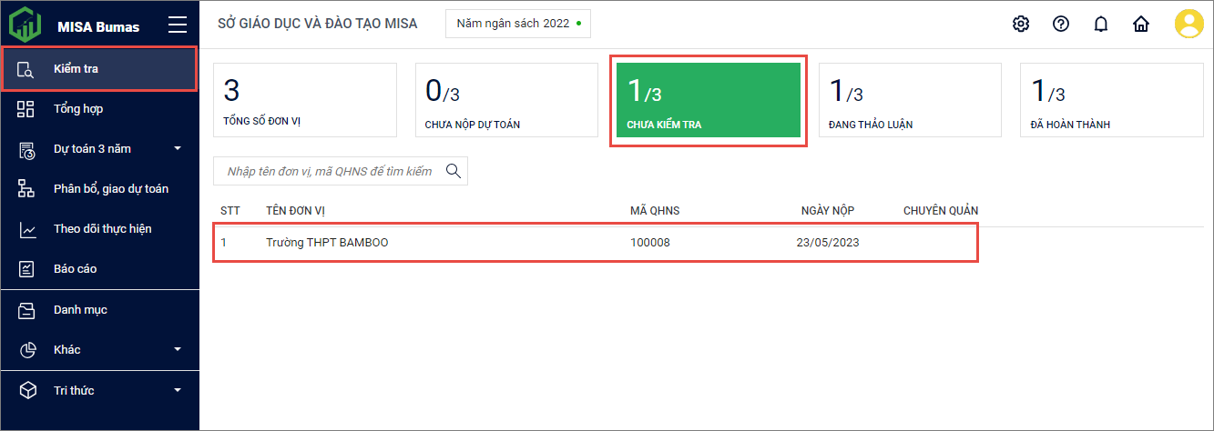 2. Chọn menu Kiểm tra. Chọn tab Chưa kiểm tra.