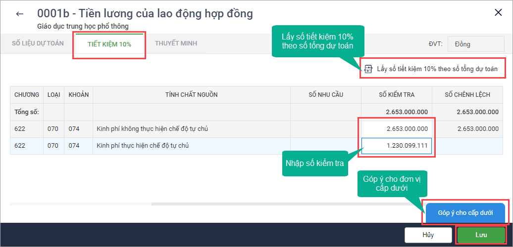 Giúp đơn vị HCSN cấp trên (Sở y tế Hồ Chí Minh) có thể kiểm tra dự toán tiết kiệm 10% của các đơn vị cấp dưới.