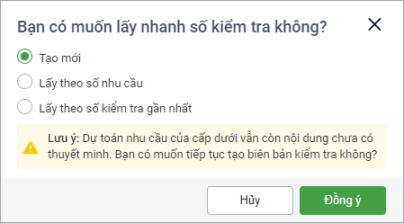 - Nếu muốn lấy nhanh số kiểm tra = số nhu cầu thì nhấn Lấy số kiểm tra theo số nhu cầu.