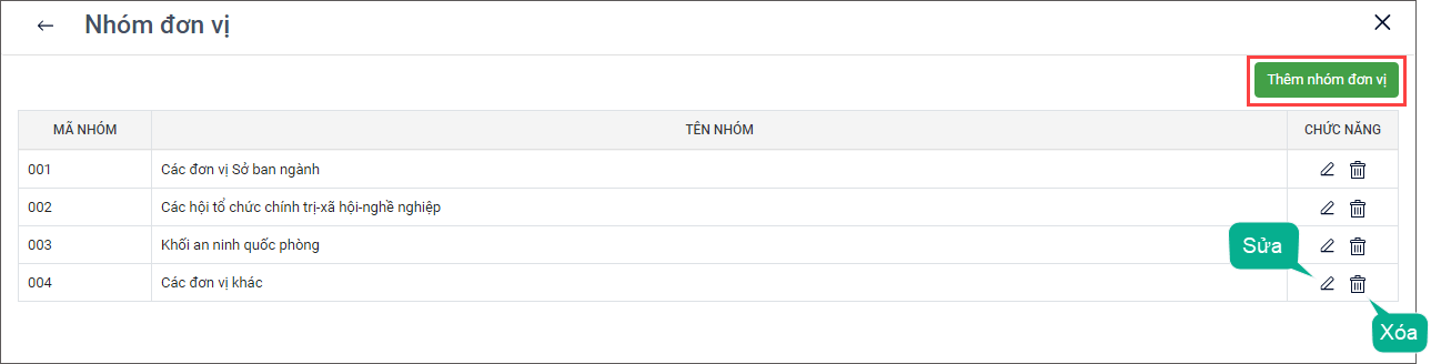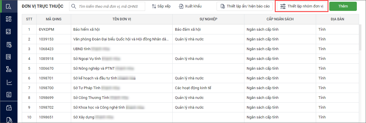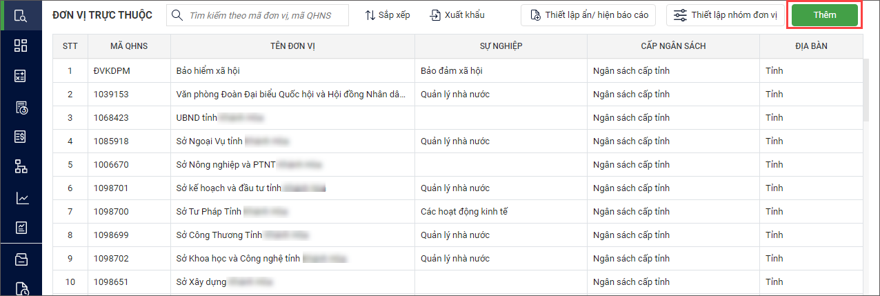 3. Để thêm đơn vị trực thuộc, nhấn Thêm.