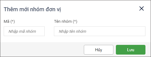 - Nhập Mã, Tên nhóm đơn vị cần thêm. Nhấn Lưu.