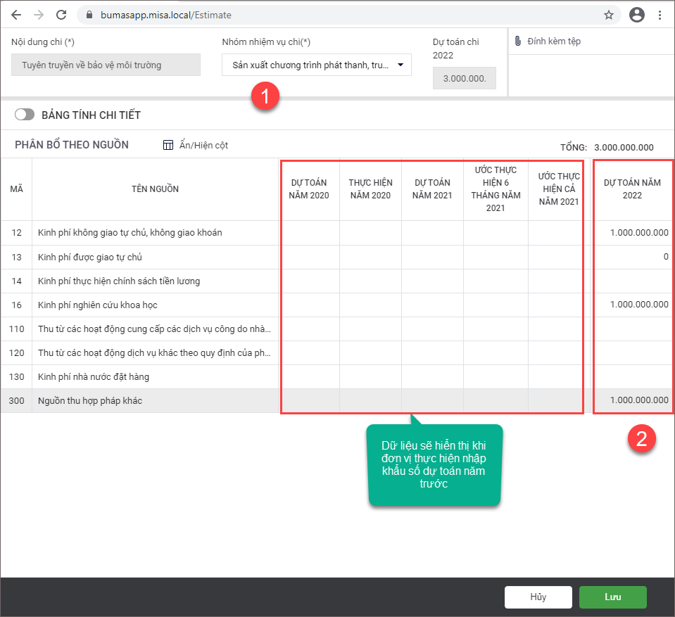 Để lập dự toán cho các Lĩnh vực khác anh/chị tiến hành thực hiện lập tương tự.