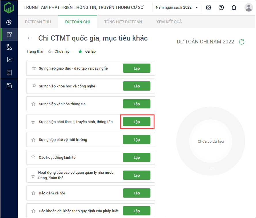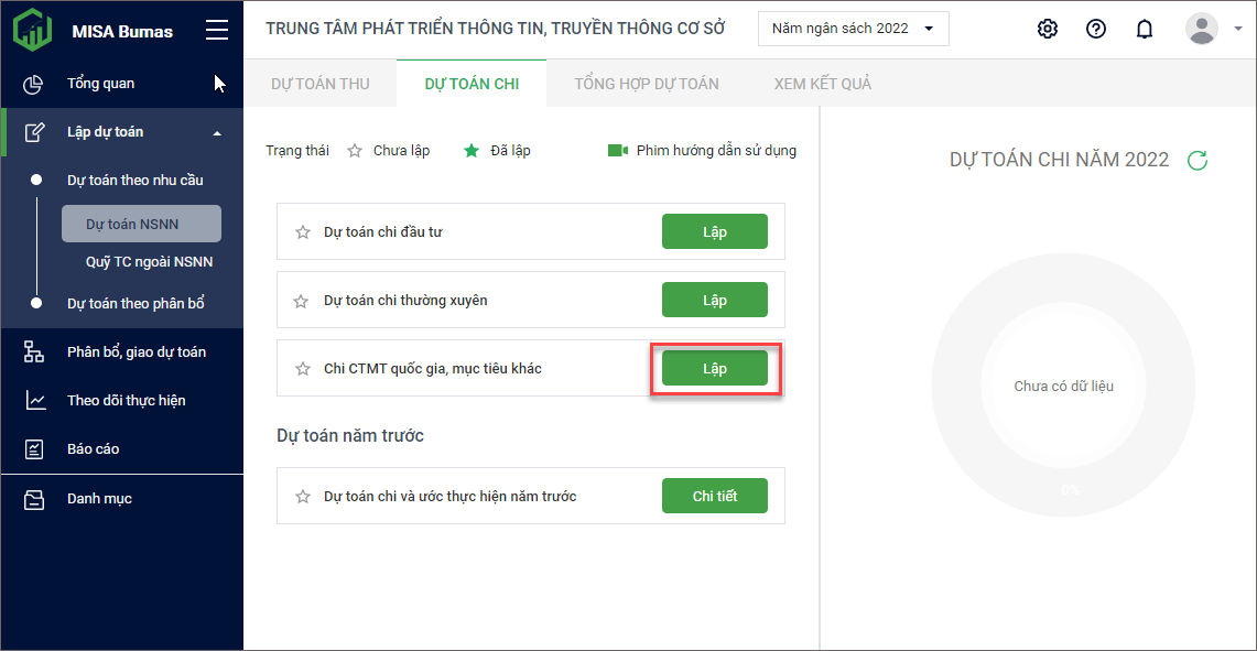 2. Nhấn Lập tại phần Chi CTMT quốc gia, mục tiêu khác.