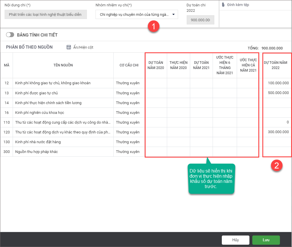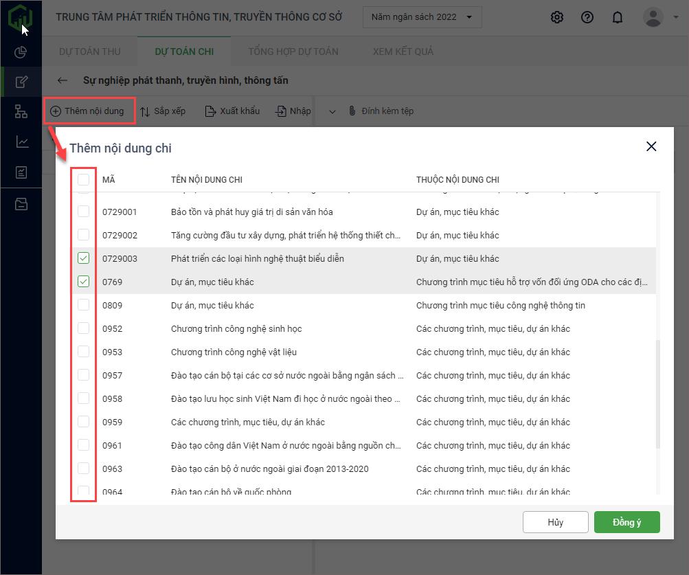 - Tích chọn vào nhiệm vụ chi cần lập dự toán.