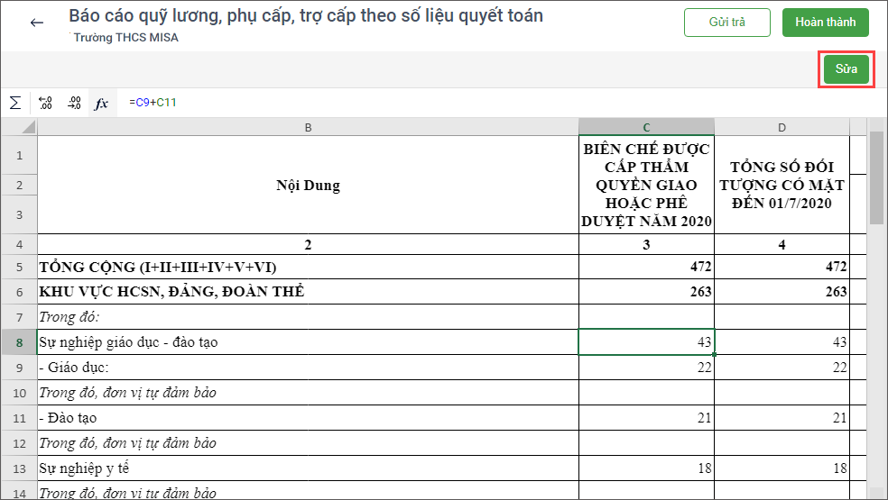 - Nhấn Sửa để nhập lại thông tin (nếu muốn).