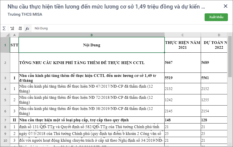 *Lưu ý: Với các đơn vị chủ quản thuộc thành phố Hồ Chí Minh, màn hình kiểm tra mẫu báo cáo của đơn vị cấp dưới sẽ hiển thị như sau: