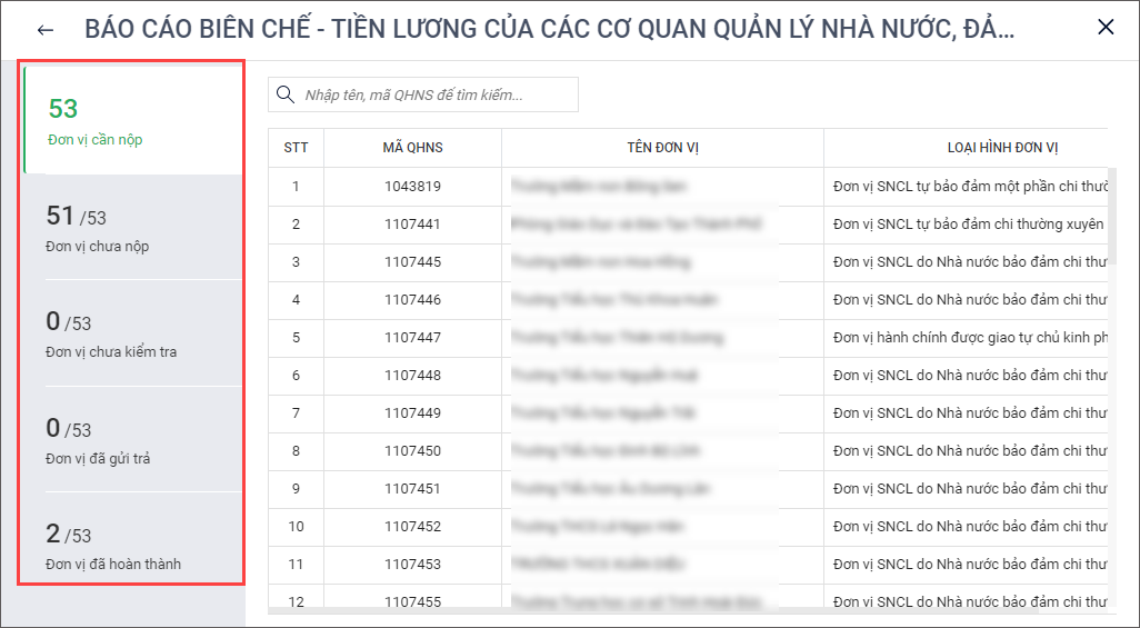 - Hoàn thành: Tất cả các biểu mẫu của đơn vị đó đã hoàn thành kiểm tra.