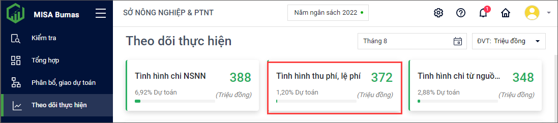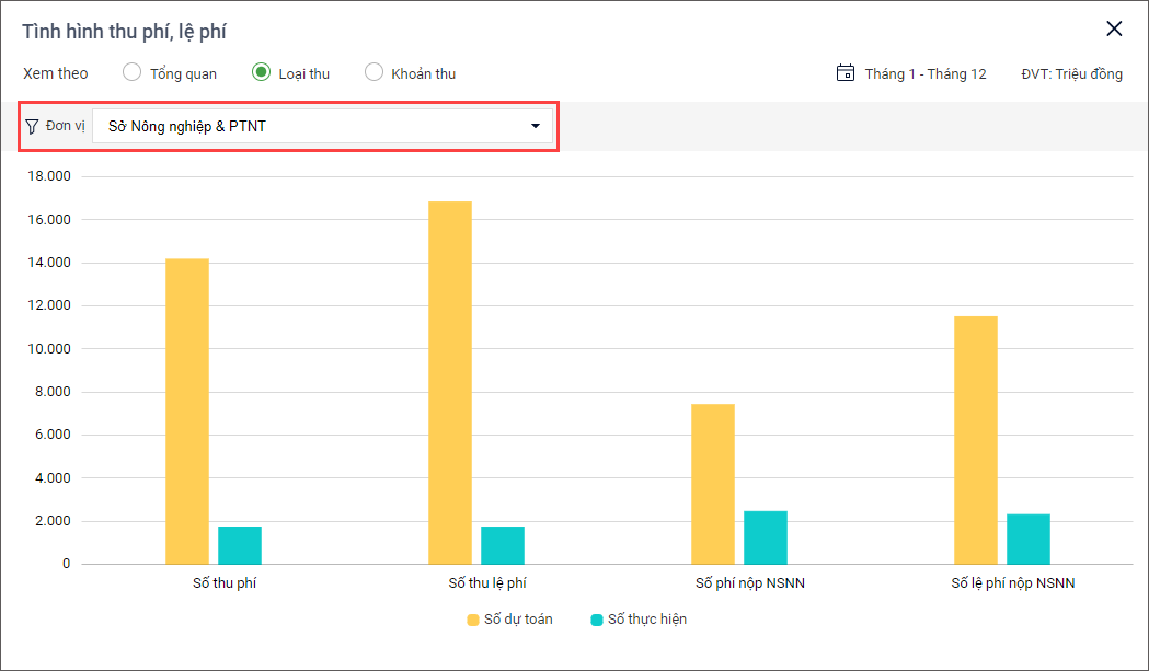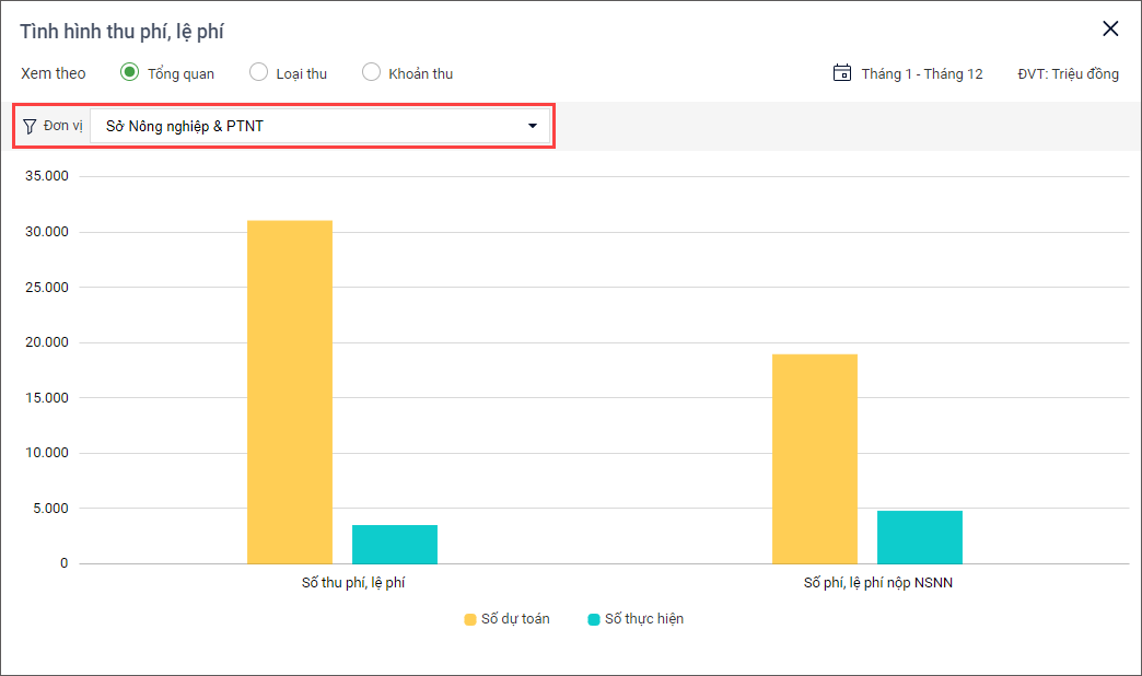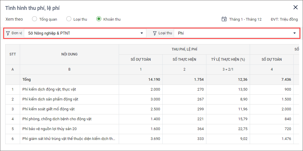Ví dụ: Theo dõi tổng quan tình hình thu phí, lệ phí tại đơn vị Sở Nông nghiệp & PTNT.