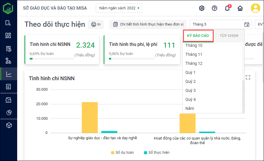 - Kỳ báo cáo: theo dõi thực hiện theo Tháng, Quý hoặc Năm.