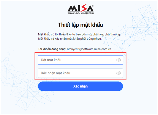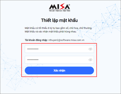 Cách 1: Vào email MISA gửi để kích hoạt tài khoản và thiết lập mật khẩu