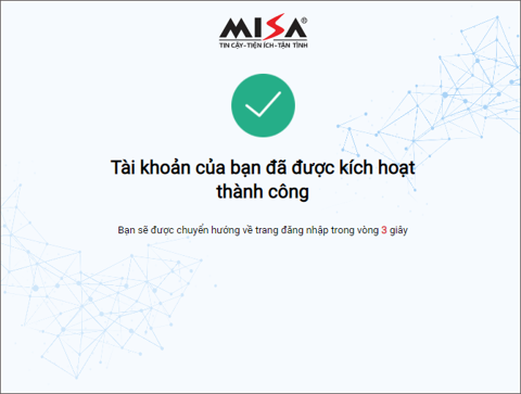 5. Phần mềm hiển thị thông báo tài khoản được kích hoạt thành công và tự chuyển hướng về trang đăng nhập MISA ID.
