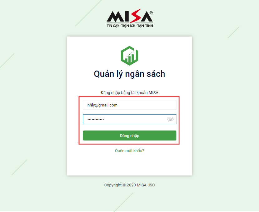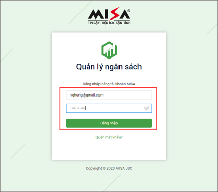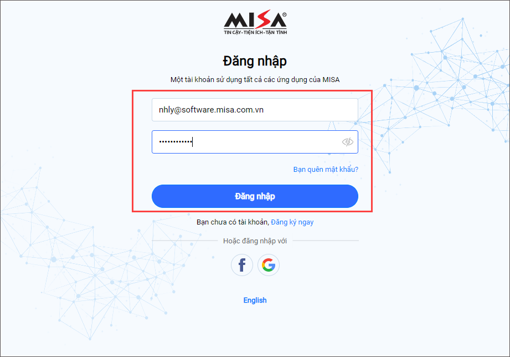 4. Nhập Email và Mật khẩu đã đăng ký MISA ID trước đó.