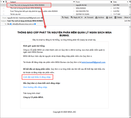 Cách 1: Vào email MISA gửi để kích hoạt tài khoản