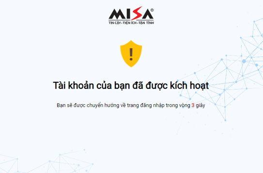 3. Phần mềm hiển thị thông báo tài khoản được kích hoạt và tự chuyển hướng về trang đăng nhập MISA ID.