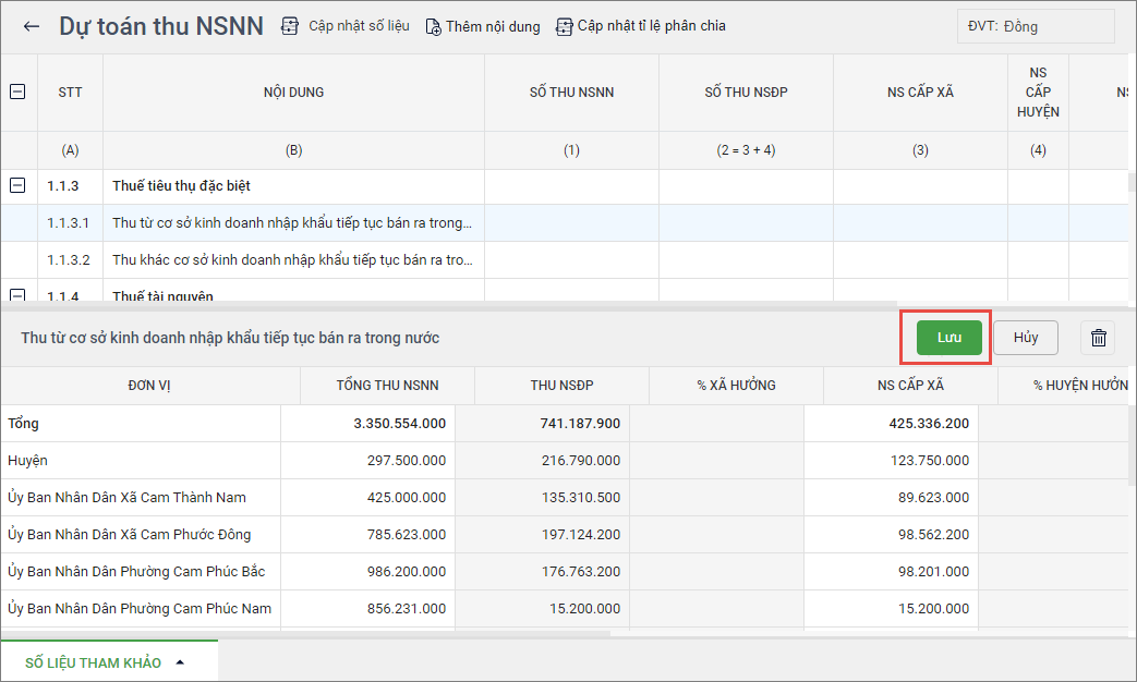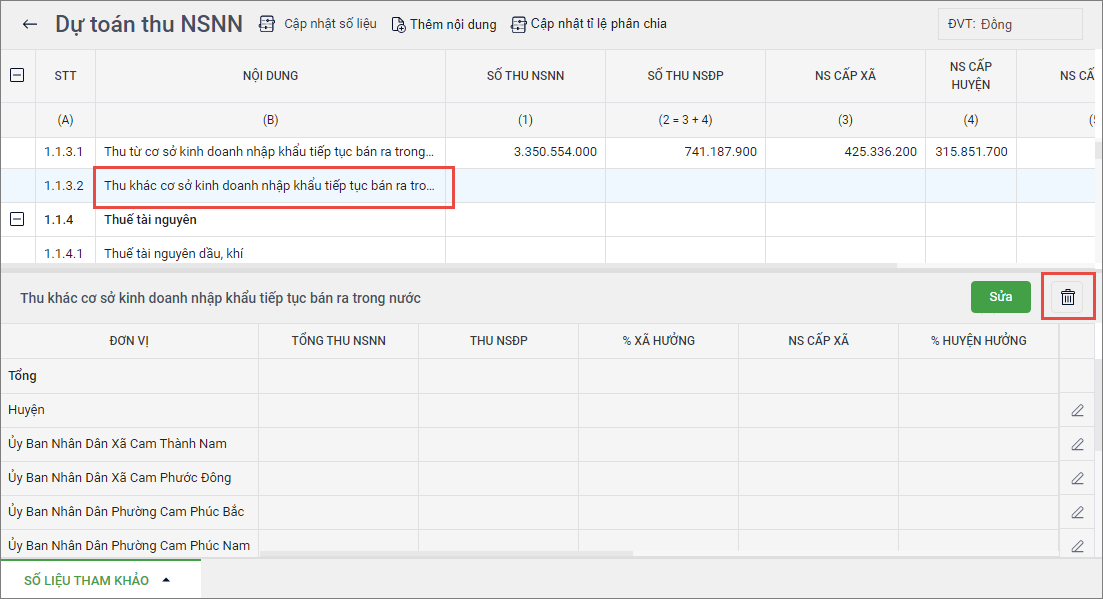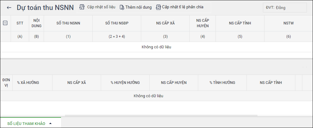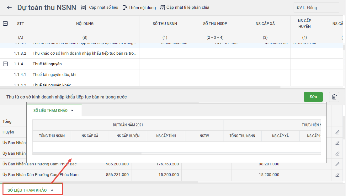 - Để có căn cứ lập dự toán cho từng nhiệm vụ thu năm kế hoạch, anh/chị có thể tham khảo số liệu năm trước tại tab Số liệu tham khảo.