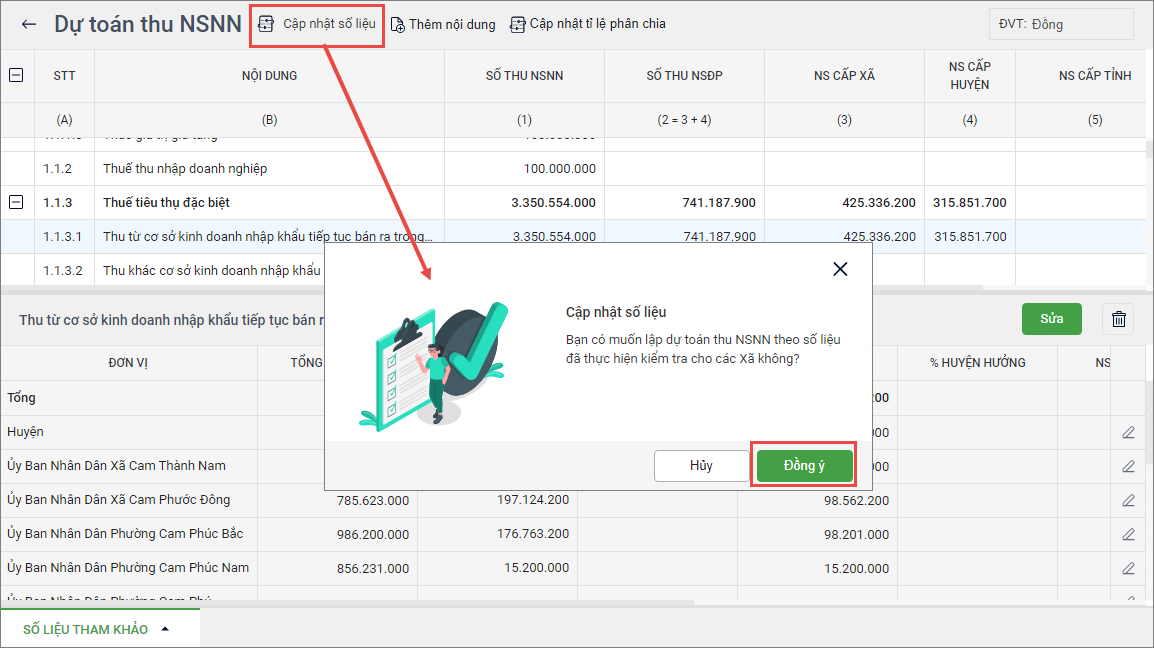 - Chọn Cập nhật số liệu, nhấn Đồng ý để Cập nhật số liệu.