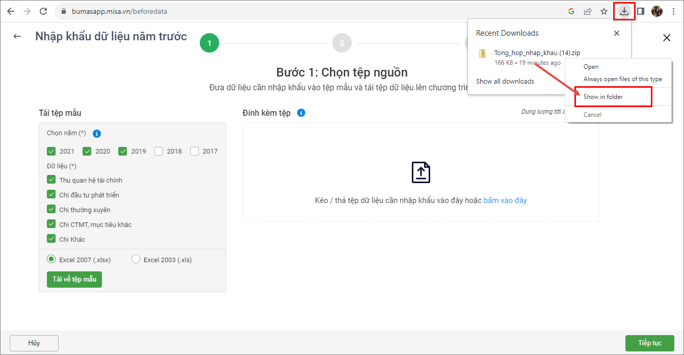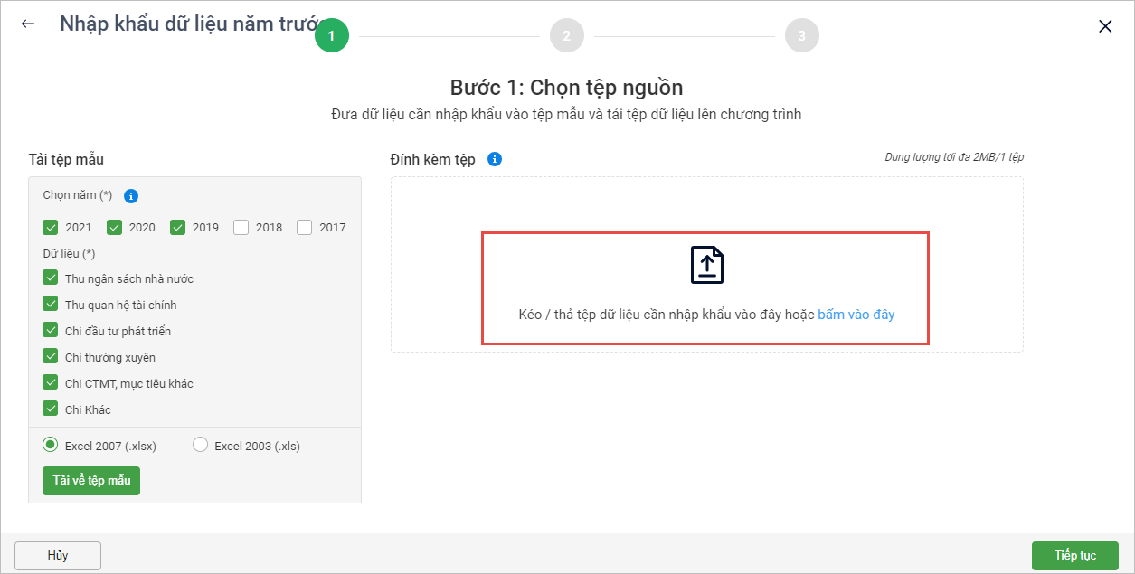 - Nhấn Tải về tệp mẫu để tải file mẫu về máy.