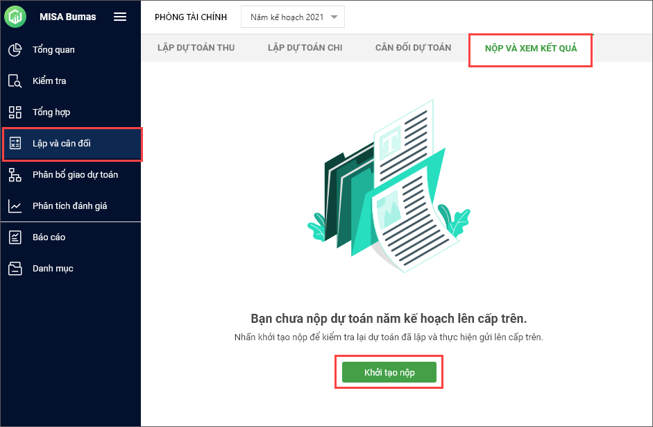 1. Vào menu Lập và cân đối. Chọn tab Nộp và xem kết quả.
