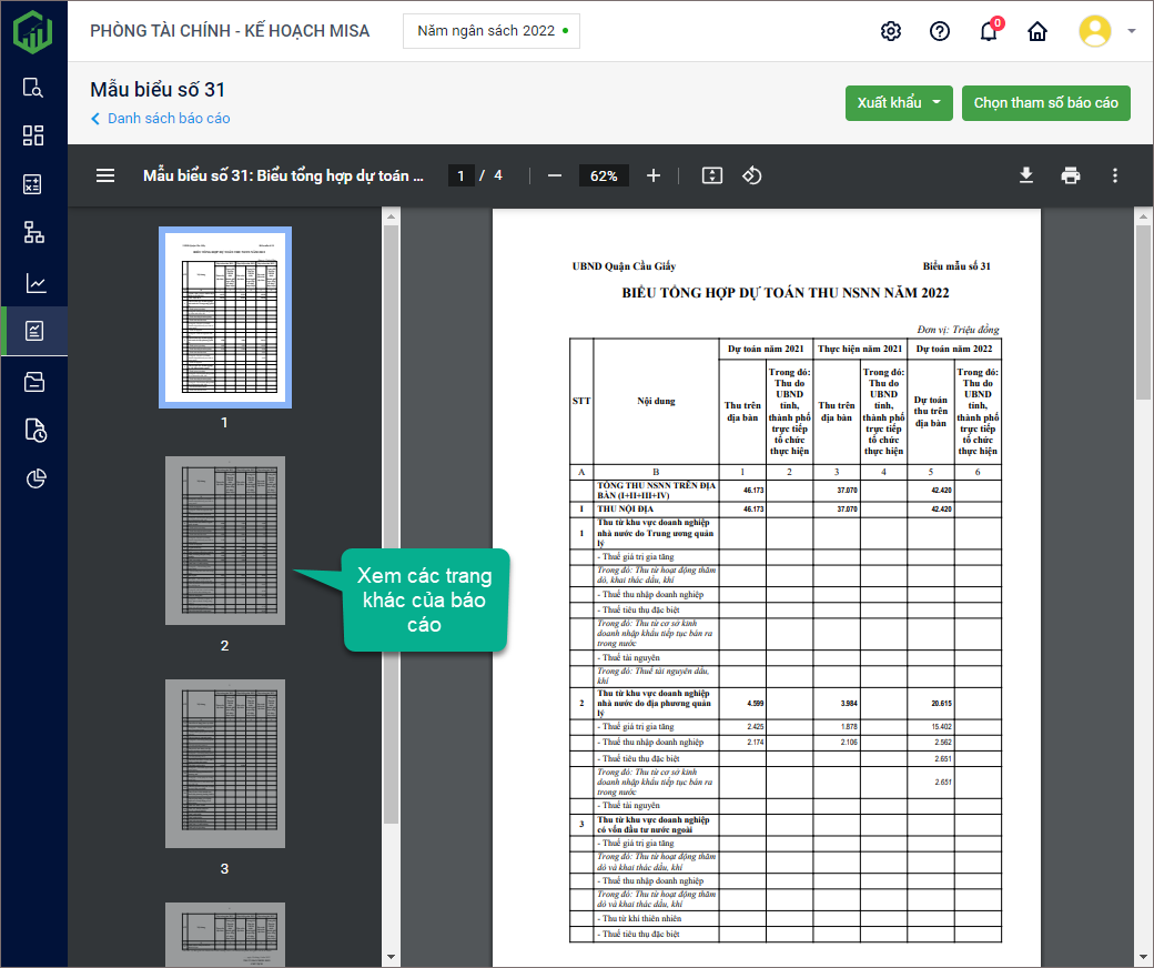 Ví dụ: In Mẫu biểu số 31: Biểu tổng hợp dự toán thu NSNN.