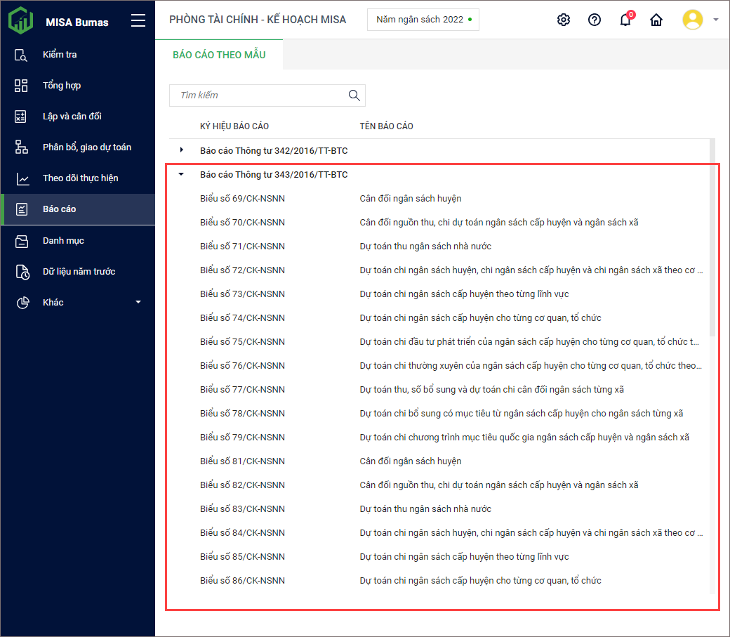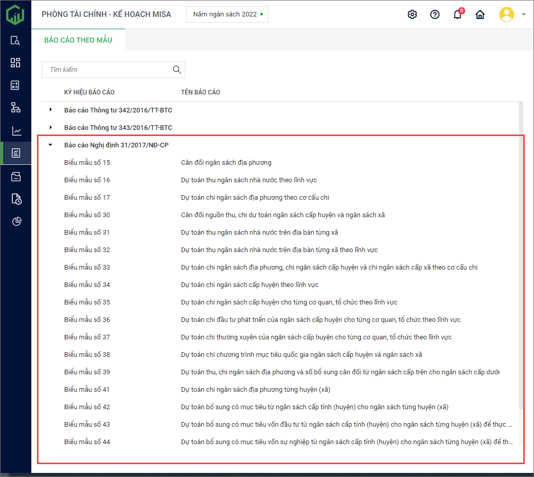 Phần mềm hỗ trợ Phòng Tài chính in được các báo cáo theo TT342, TT 343, Nghị định 31 và các báo cáo khác.