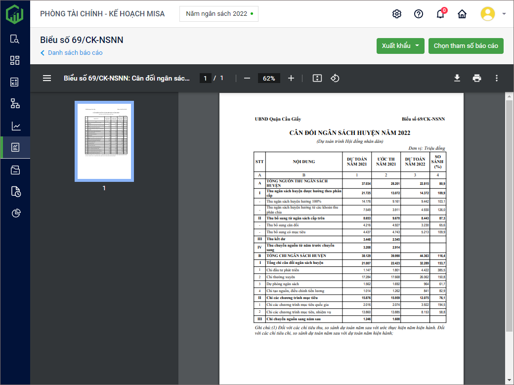 Ví dụ: In Mẫu biểu số 69/CK-NSNN: Cân đối ngân sách huyện.