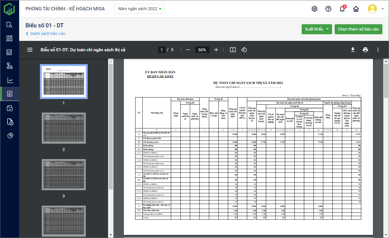 Ví dụ: In Biểu số 01-DT: Dự toán chi ngân sách thị xã.