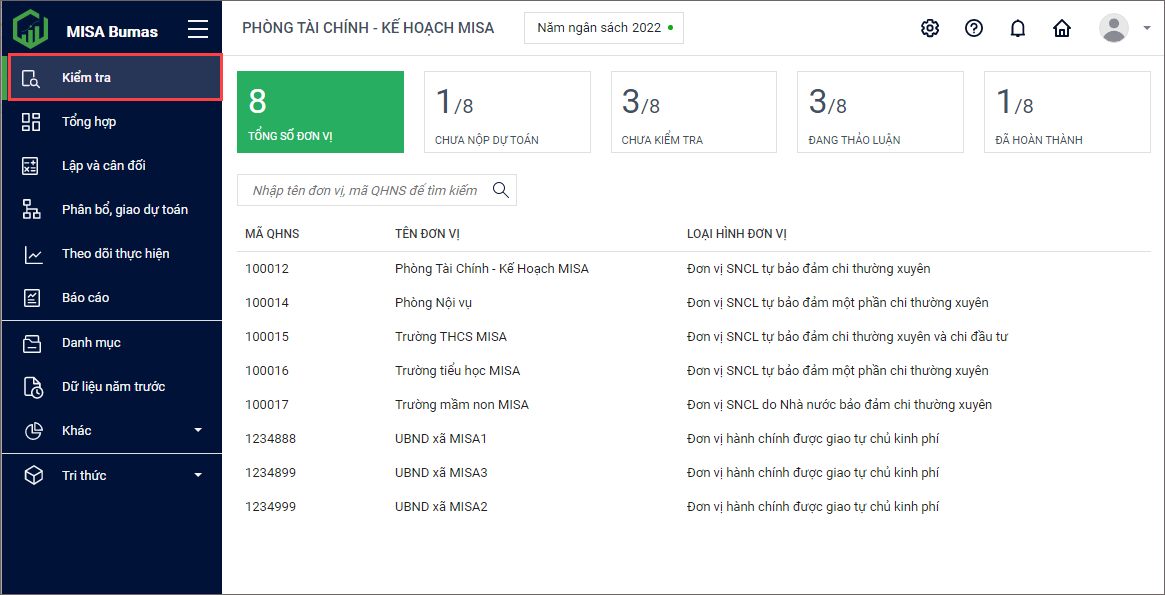 – Chưa kiểm tra: Các đơn vị đã nộp dự toán cho Phòng Tài chính nhưng Phòng Tài chính chưa kiểm tra dự toán.