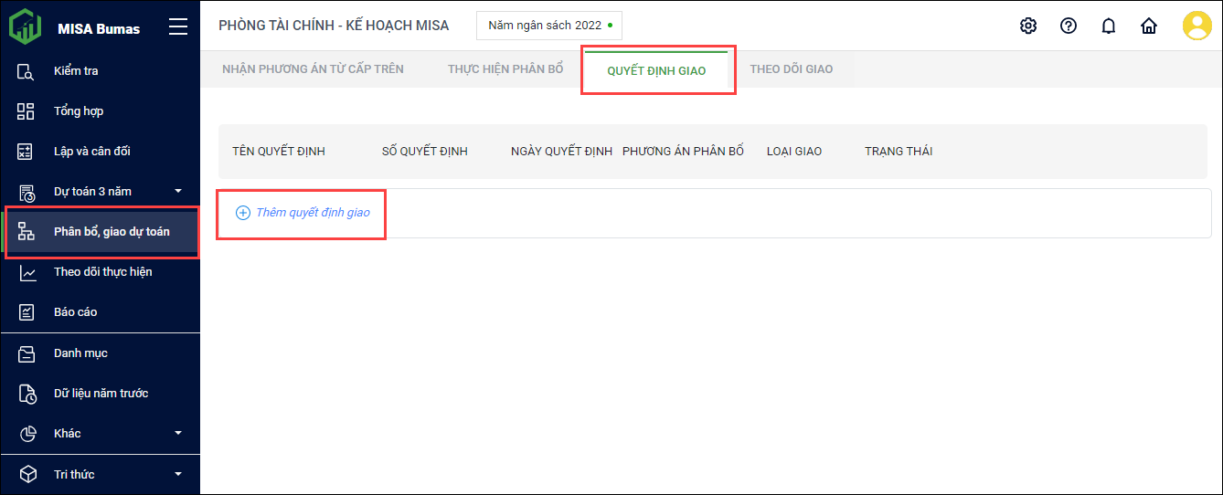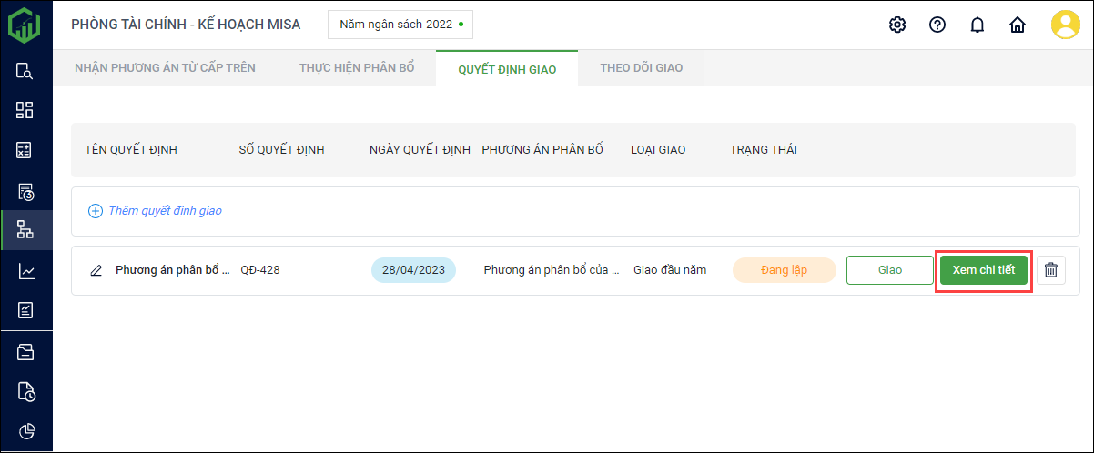 Sau khi thực hiện phân bổ, Phòng Tài chính có thể lập được quyết định giao và gửi cho các đơn vị cấp dưới.