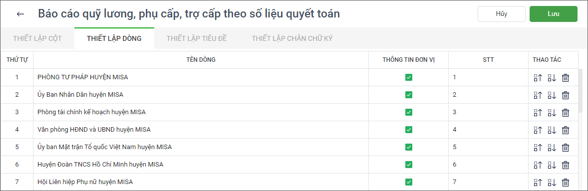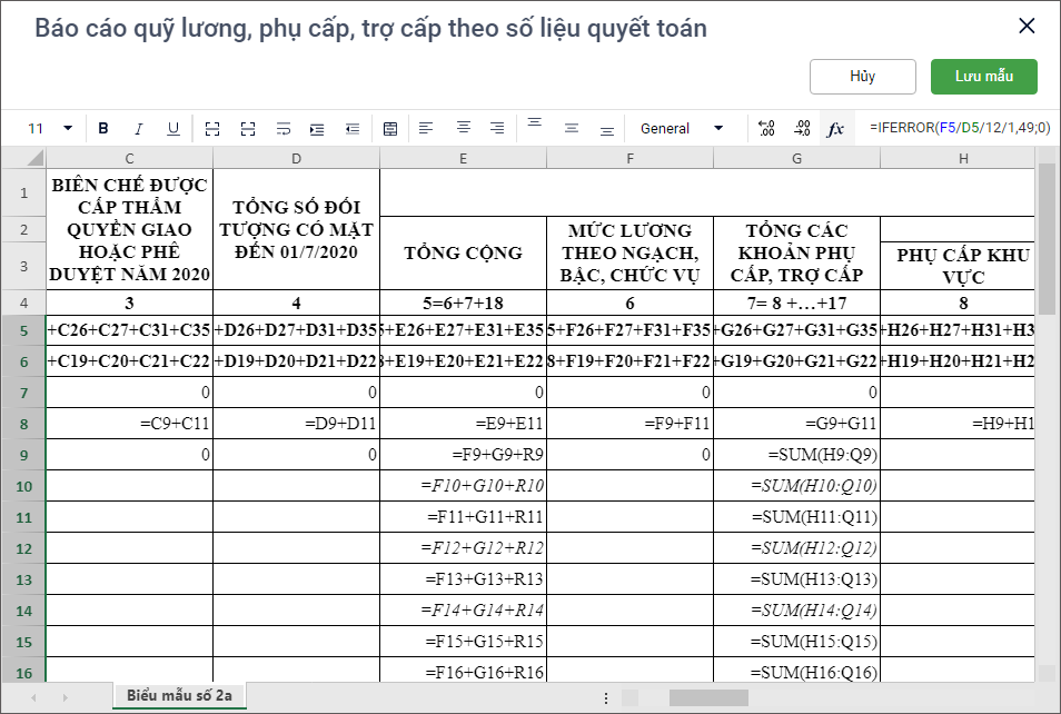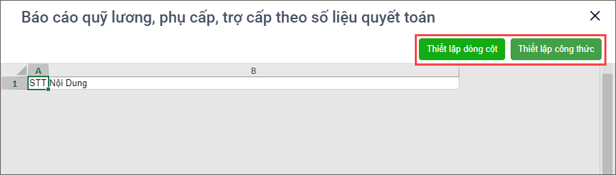 4. Thực hiện Thiết lập dòng cột Thiết lập công thức cho biểu mẫu đó.