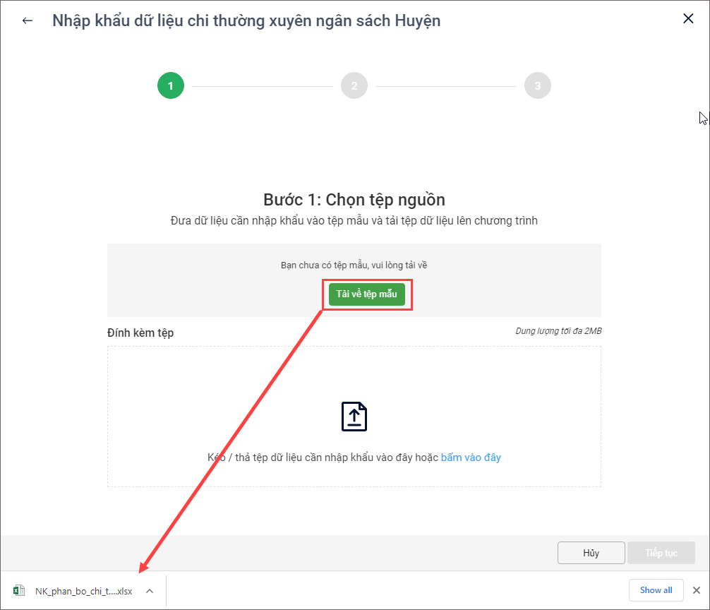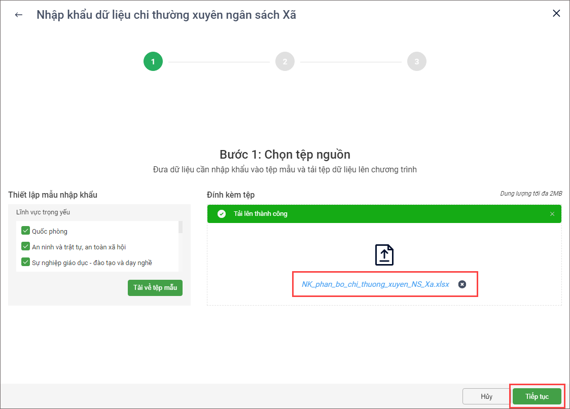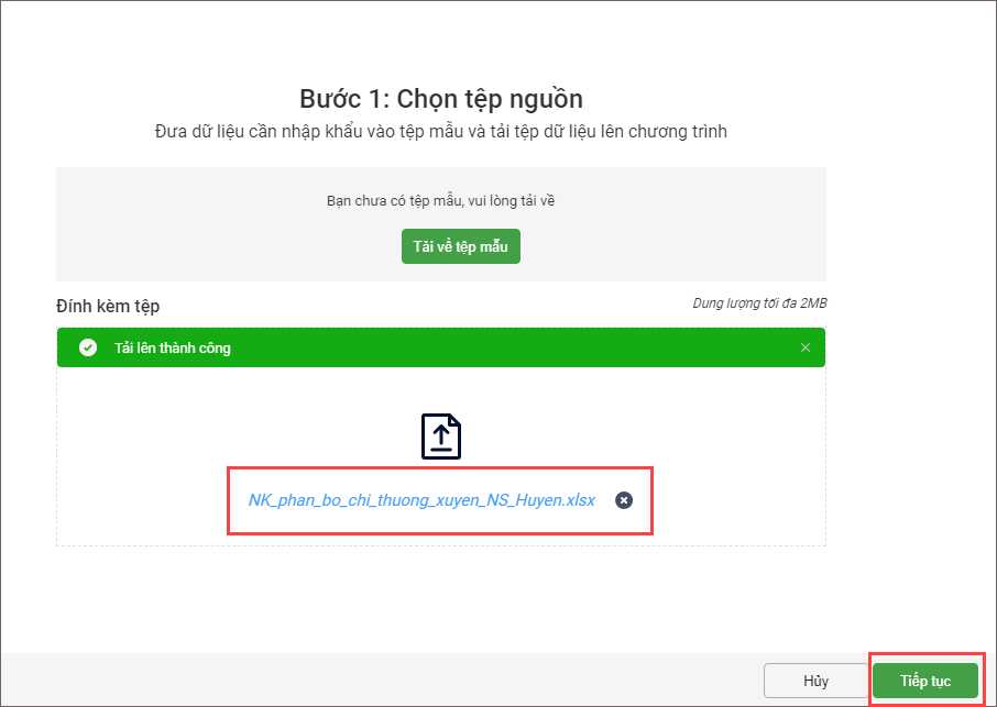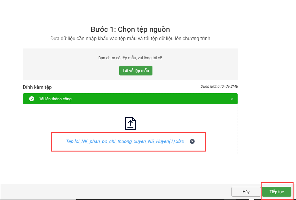 - Sau khi tải tệp lên, nhấn Tiếp tục.