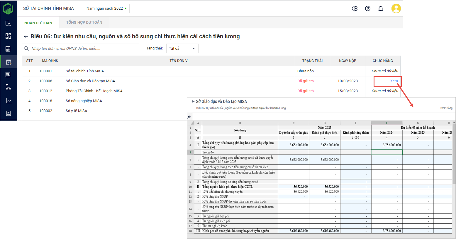 3. Nhấn Xem để xem chi tiết báo cáo của đơn vị.
