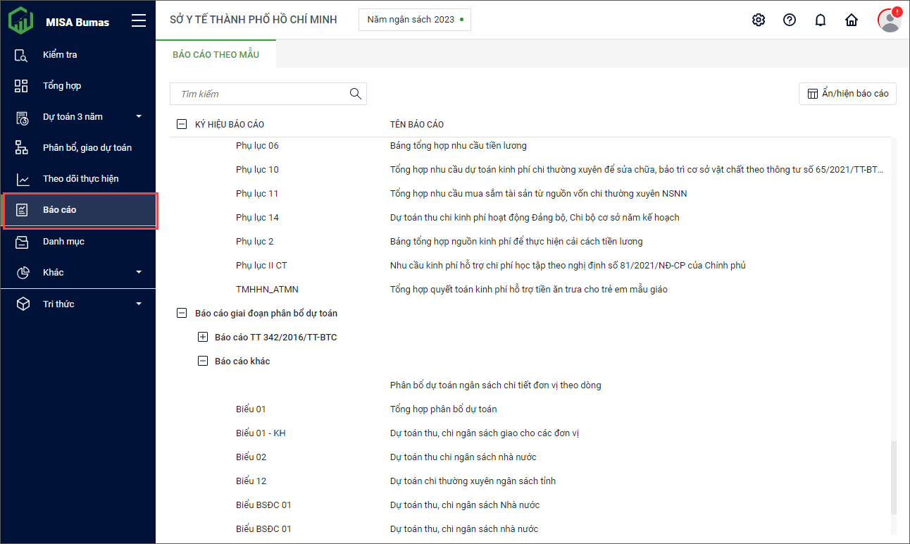 [Sở y tế HCM] In báo cáo đặc thù Các bước thực hiện: 1. Vào mục Báo cáo. 2. Kích đúp chuột vào báo cáo cần in. 3. Chọn tham số báo cáo. 4. Nhấn Đồng ý để xem báo cáo. Lượt xem: 368 Cập nhật 08/05/2024 Bài viết này hữu ích chứ? Có Không Bài viết liên quan Thiết lập và ban hành Mẫu dự toán chi thường xuyên Đơn vị HCSN cấp trên kiểm tra dự toán tiết kiệm 10% của đơn vị cấp dưới Đơn vị chủ quản nhận, tổng hợp và phản hồi dự toán ba năm của các đơn vị cấp dưới Lập dự toán ba năm và nộp lên cấp trên Dự toán ba năm Lập tờ trình và phê duyệt tờ trình bổ sung, điều chỉnh dự toán