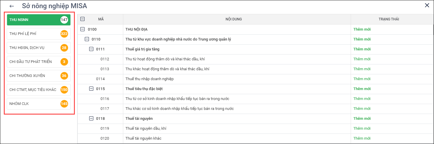 2. Danh mục Thu – Chi, Mục lục ngân sách, Danh mục khác đã được phần mềm mặc định sẵn, anh/chị cần kiểm tra và đánh dấu sử dụng theo đặc điểm hoạt động của đơn vị.