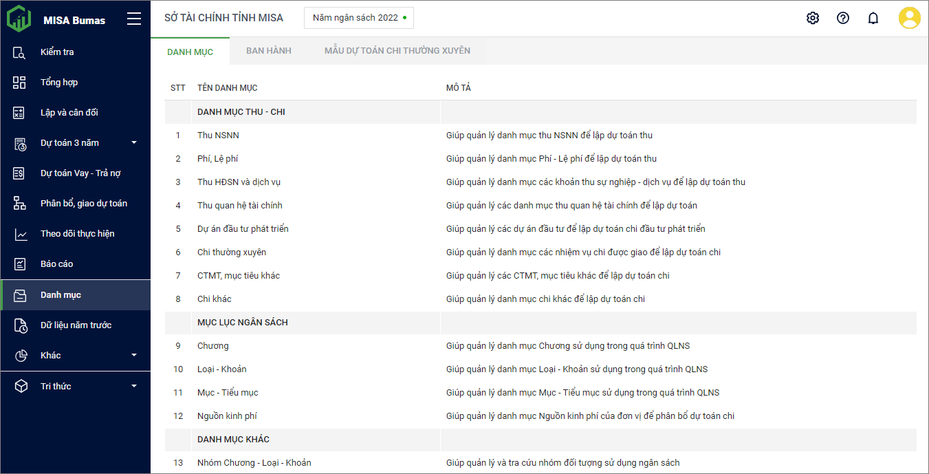 Giúp đơn vị thiết lập và ban hành các danh mục thu, nhiệm vụ chi để hướng dẫn lập dự toán cho các đơn vị cấp dưới.
