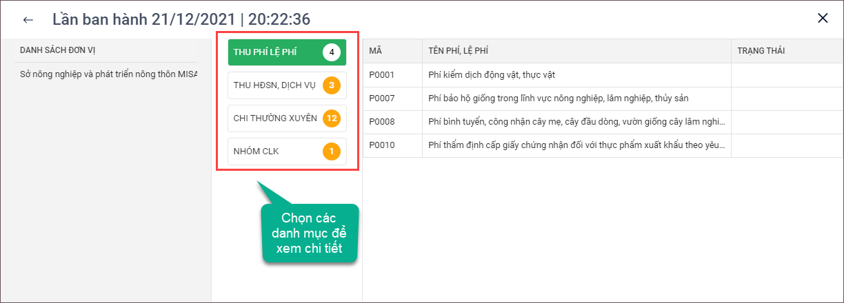 2. Nhấn Xem chi tiết để xem chi tiết các nội dung đã được ban hành.