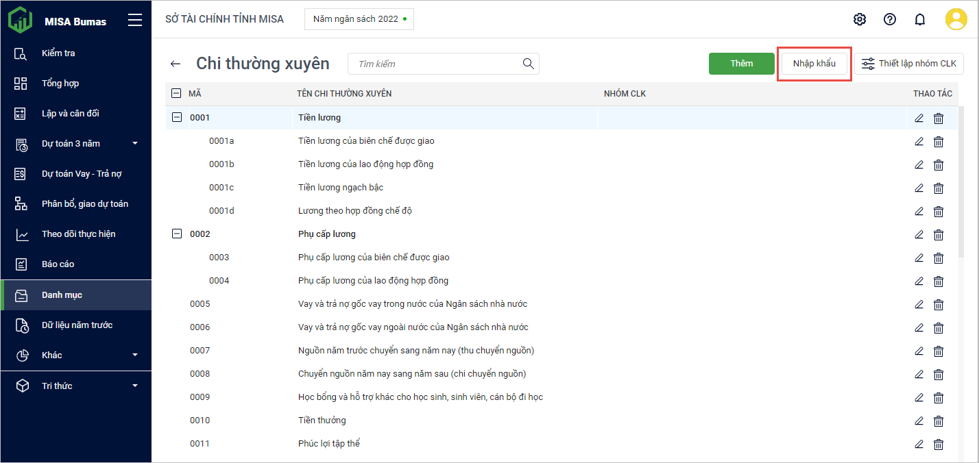 IV. Nhập khẩu danh mục Chi thường xuyên.