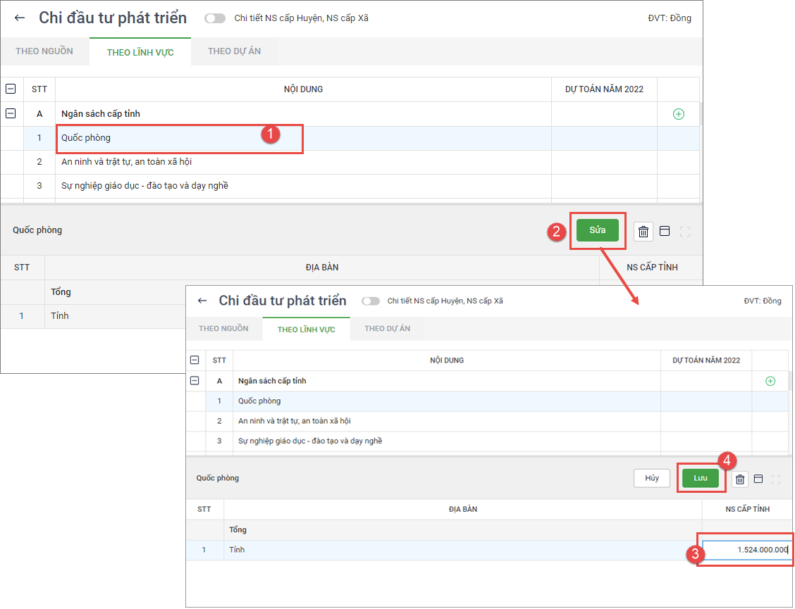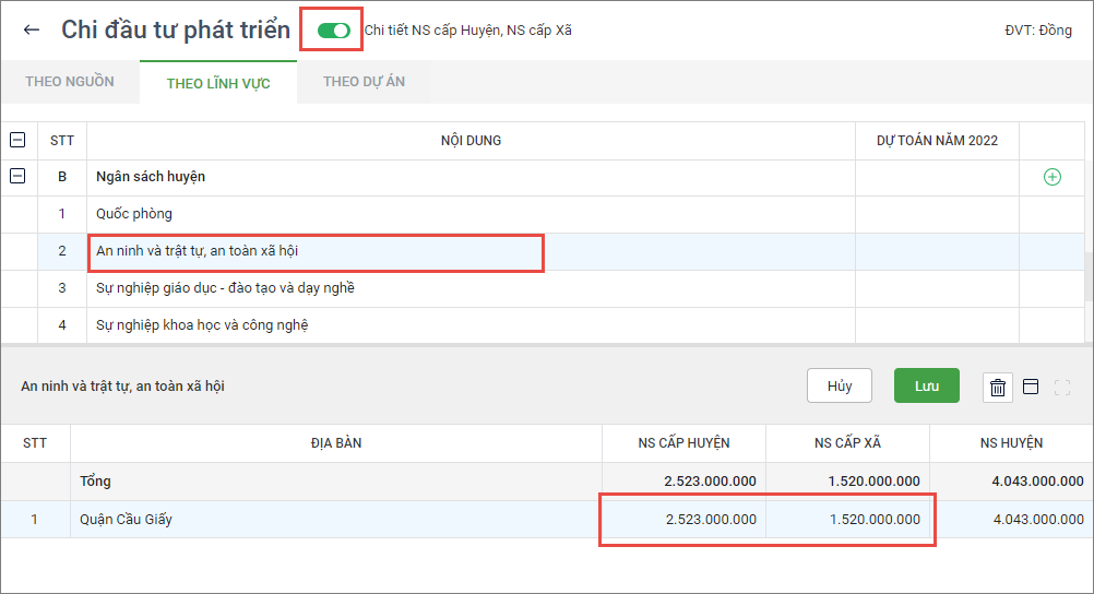 - Nhập số dự toán cho cấp ngân sách, nhấn Lưu.