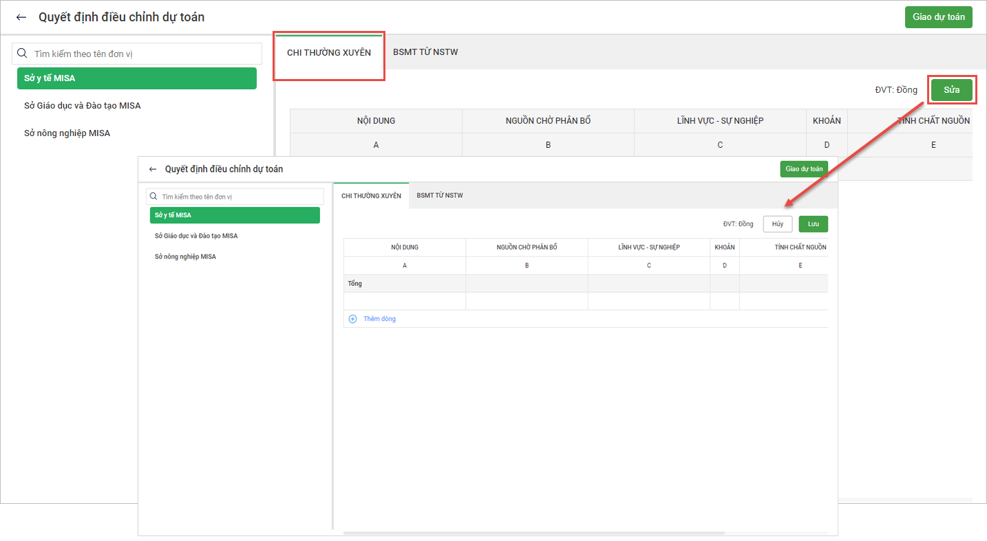 • Chọn tab Chi thường xuyên, nhấn Sửa.