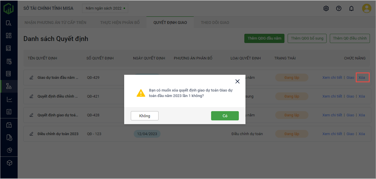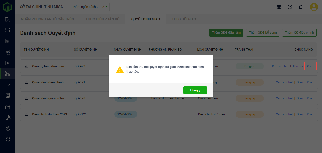 – Không thể xóa quyết định đã giao. Muốn xóa thì anh chị cần thu hồi lại quyết định giao đó.