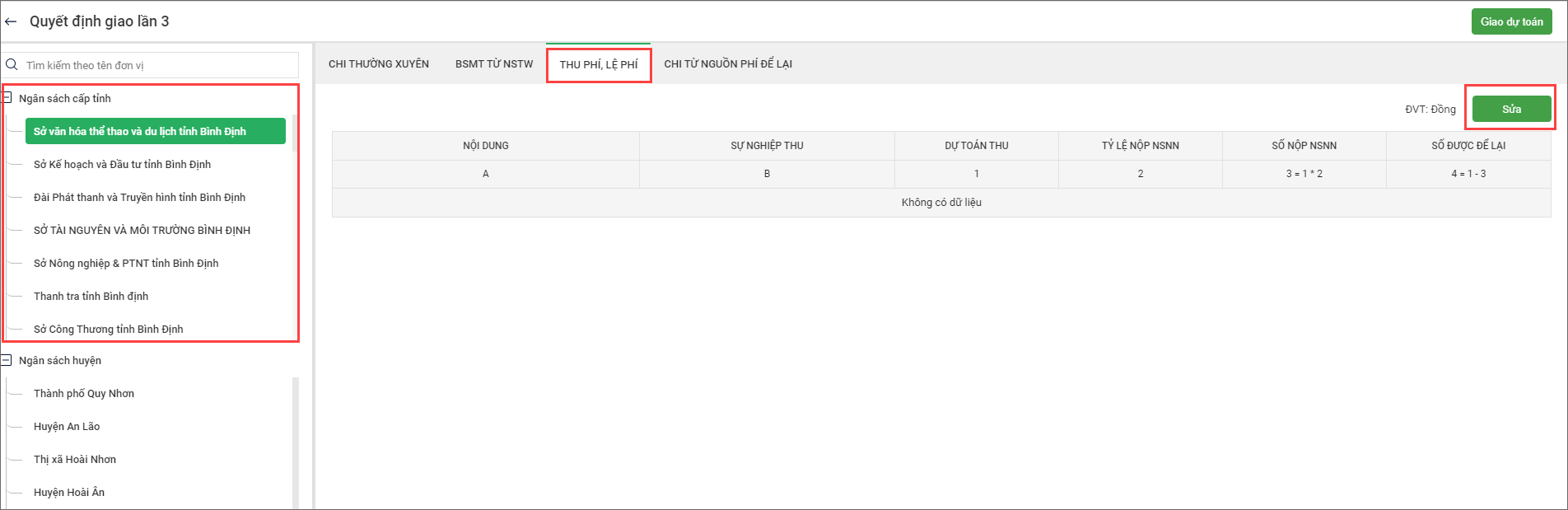 a. Nhập số phân bổ giao cho các đơn vị thuộc ngân sách cấp tỉnh