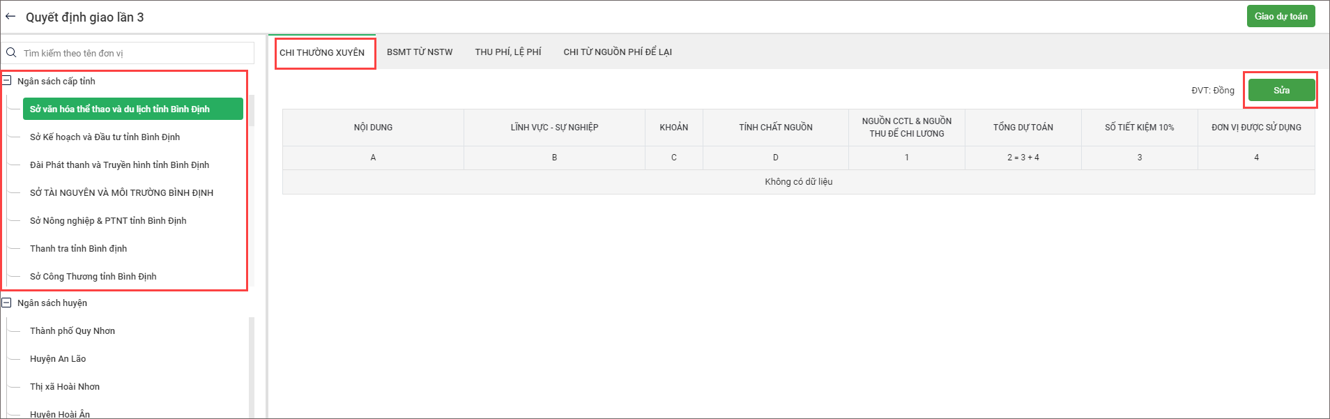 • Chọn tab Chi thường xuyên. Nhấn Sửa.