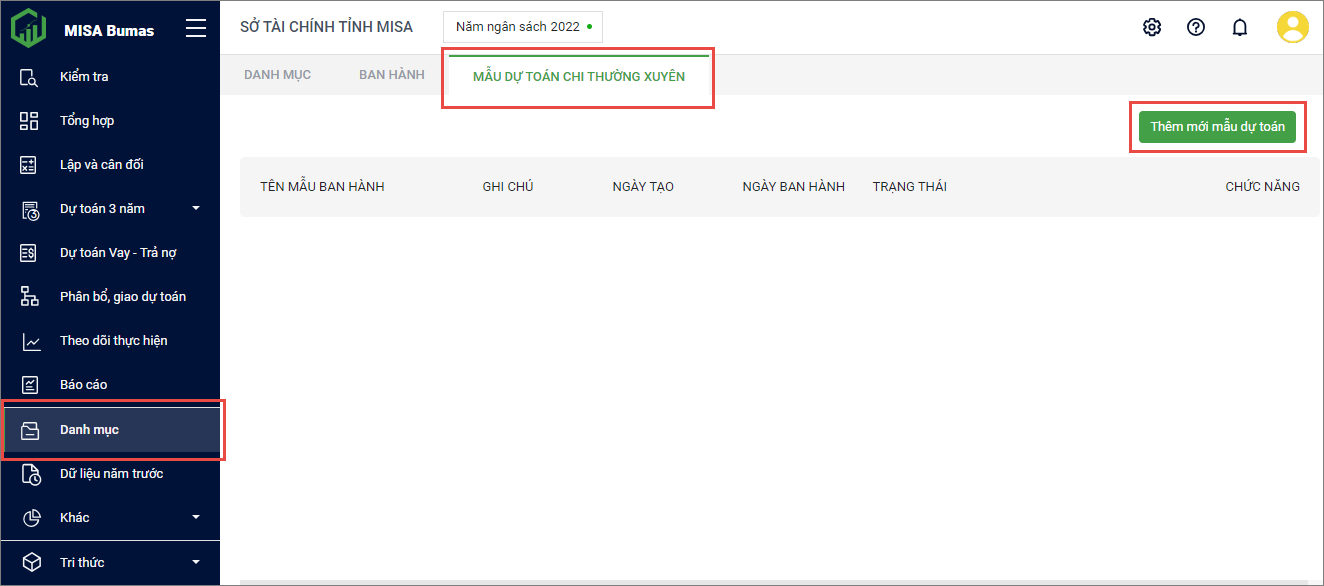 Thiết lập và ban hành Mẫu dự toán chi thường xuyên