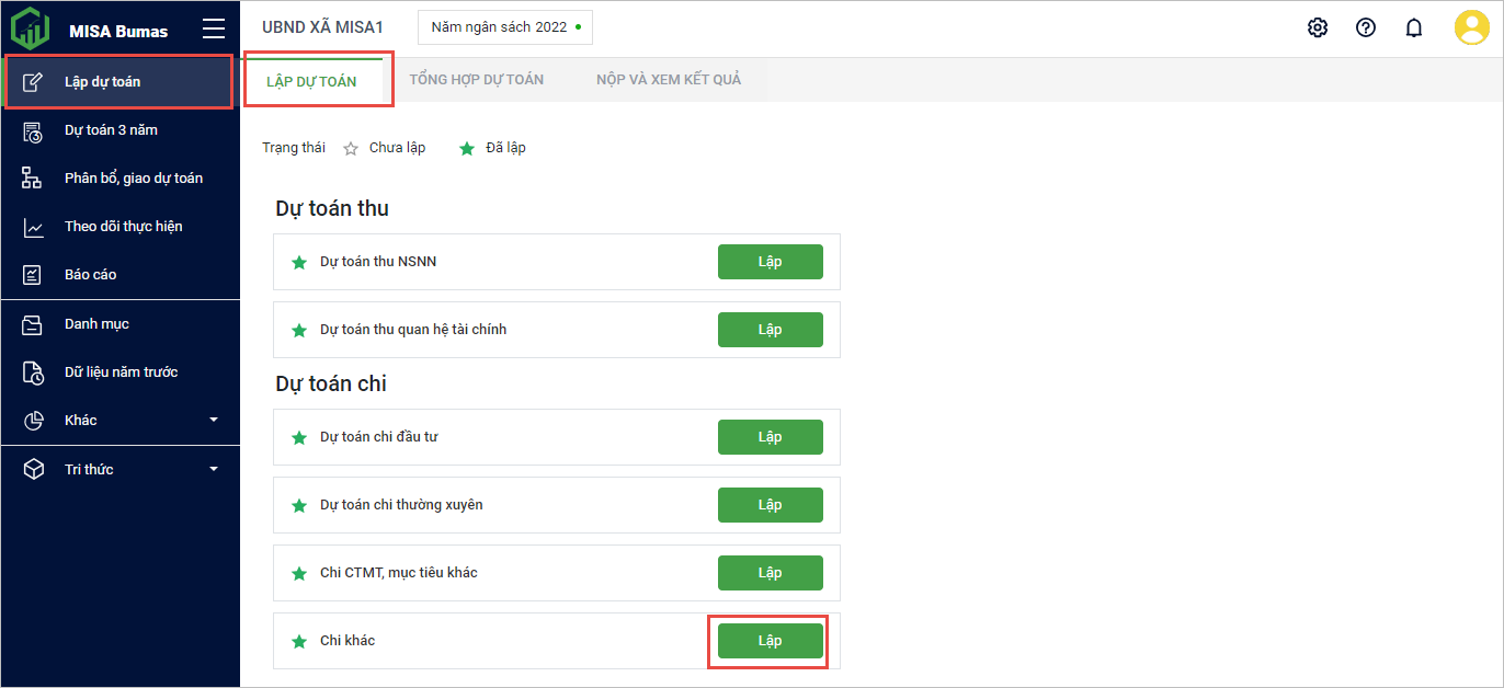 1. Vào menu Lập dự toán, chọn tab Lập dự toán.