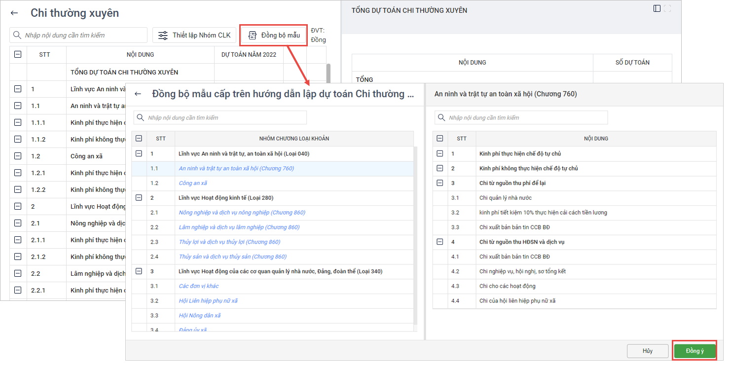 - Nhấn Đồng ý để quyết định đồng bộ vào màn hình lập dự toán.
