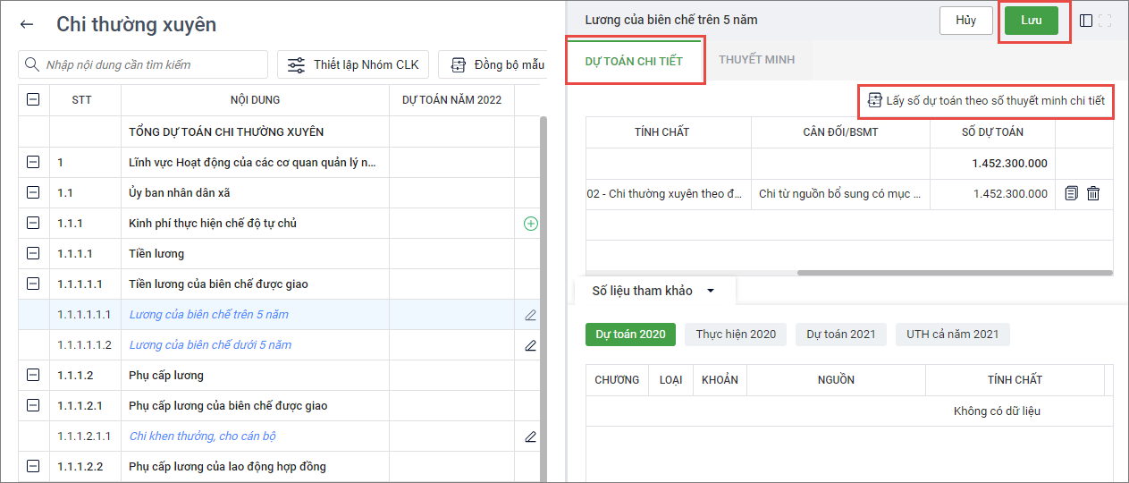 2. Thêm nội dung Chi thường xuyên và lập dự toán cho nội dung chi đó